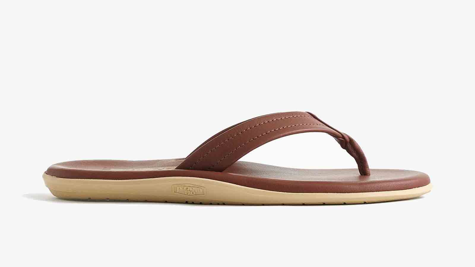The J. Crew Island Slipper Flip Flops ($90) has a modern style that fits into any contemporary wardrobe. They are entirely handmade in the USA with a full-grain leather upper paired with pebbled leather straps. The thick rubber sole pairs with arch support and a contoured heel cup to help ensure equal weight distribution and alignment. The Island Pro rubber outsole has been finished with a checkered tread pattern that provides exceptional traction on a range of different surfaces. They are finished in a whiskey color with corresponding stitching for a sleek finish. Ideal for the fashion-conscious male, these investment flip flips promise to offer durable service for many years to come.