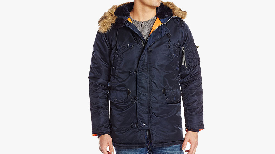 The Alpha Industries Men’s N-3B Winter Parka ($180) was designed for extremely cold weather. The N-3B design was originally created to protect U.S. Air Crews and ground personnel during flight operations in severe cold and polar conditions. The slim fit of this parka helps retain the protective qualities of the original N-3B. Features include a 100% flight nylon shell with nylon lining and polyfill, a hood lined with synthetic mouton fur and trimmed with removable faux coyote fur, reinforced elbow patches for reinforcement, and inset knit cuffs for added warmth.